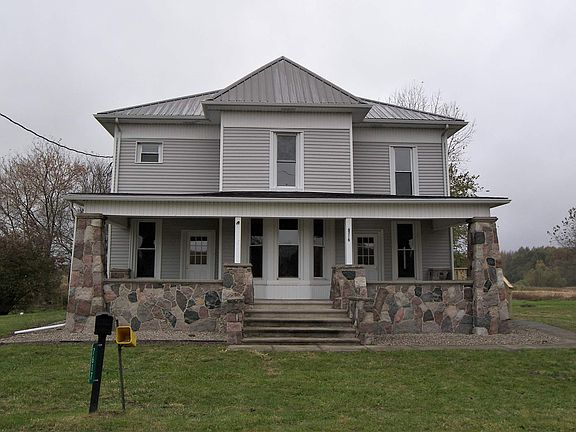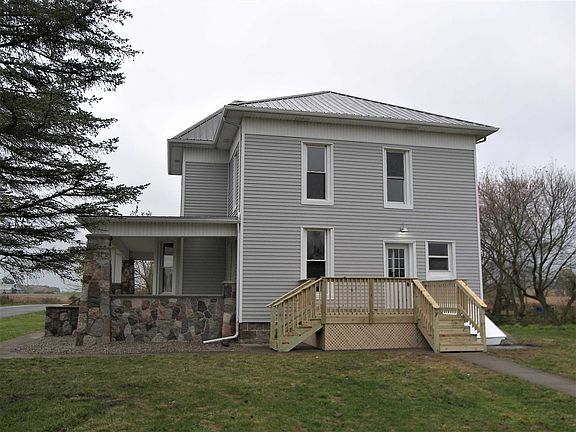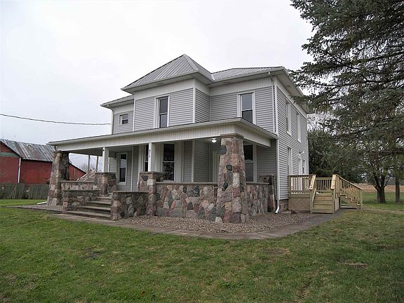 Remodeled 5 bedroom 2 bath farmhouse on a 2 acre rural homesite just south of the Claypool Elementary School. Maintenance free vinyl siding, new metal roof (with new sheeting), vinyl clad insulated windows, covered front porch and a new side entry deck. Flexible floor plan, main level offers living room, family room, kitchen (with new refrigerator, range/oven and microwave range hood), breakfast room, formal dining room and a bathroom with laundry area (washer and dryer included). Upper level features 4 or 5 bedrooms (adjoining BRs could function for nursery or home office setup) and a full bath. Unfinished basement for storage and mechanicals (new high efficiency Carrier furnace, new water heater). Amenities include: fresh interior paint, new floor coverings, ceramic tile kitchen backsplash, new ceiling fans & light fixtures, 200 amp breaker box, central AC, 4 inch well, freshly graveled parking, REMC electric. The 2 acre homesite is zoned agricultural and allows ample room for a pole building and gardening. Immediate possession available.
