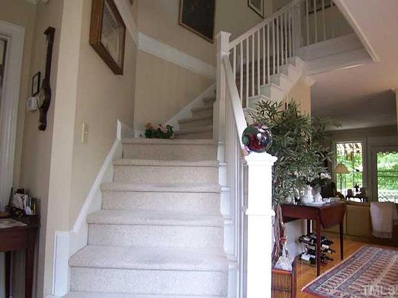 This exceptional townhome with lake view in the heart of N. Raleigh features a sun-filled open floor plan with extensive windows, vaulted ceilings, wood floors & 2 huge decks! Formal dining & LR w/fireplace & built-ins, 1st floor master suite plus 2 BRs & study alcove upstairs. Basement has BR, Bath, rec room, utility & bonus rooms. Great storage, detached 2 car garage.