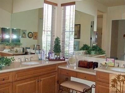 NEW POOL spa Landscape , new lite carpet. / paint . New 14' sliders out to patio ,Misters awning NEW BUILT IN BAR & BBQ SALES IN HI 600-700 now Superb architectural design and tastefully appointed withIcustomized rich colors thru-out in 18 Porcelain tiles, Maslan carpeting, custom-colored paint & granite counters. The kitchen & baths feature cognac raised panel cabinetry and surround travertine in master bath. High efficiency dual heating and AC systems. This European-flavored community is gated with a 24 hour surveillance system with Indian Wells privileges & private gate access to the Miramonte Hotel & Spa. This plan was the favorite and sold out immediately. Large yard with mountain views & long paved driveway.Brokered And Advertised By: Desert Gate Real EstateListing Agent: Eddie Sanin