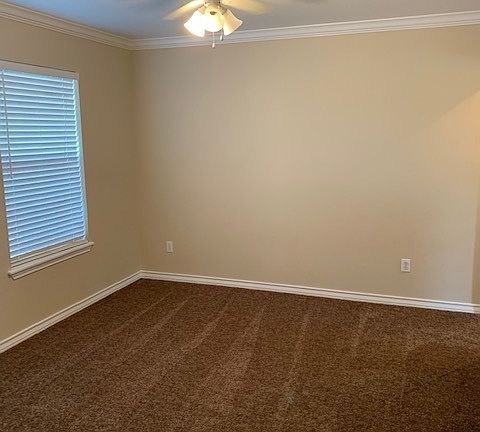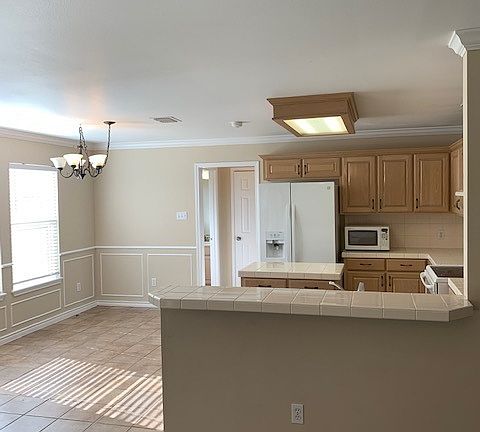 Beautiful two-story, single-family home with three beds and 2 and 1/2 baths. Spacious living area and dining room. Open concept kitchen with hardwood cabinets, tile floors, and refrigerator. Lovely master suite with private bathroom. Large bedrooms with walk-in closets. Fenced backyard with covered patio. Ready to rent!