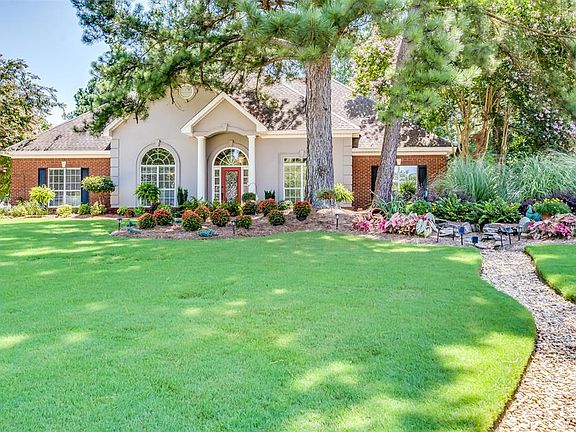 One look at this MAGNIFICENT 4-bedroom, 3-bath home sitting on a quiet 0.66-acre cul-de-sac lot, & you'll want to call it "home"! The yard & flowerbeds are absolutely beautiful; you'll be proud to maintain this yard & enjoy making it your own. As you step through the lovely lead glass door into the large foyer, you'll appreciate the high ceilings, wood floors, heavy trim work & spacious open floor plan. The formal dining room along with the living room, (currently used as an office) feature wainscoting & elegant transom windows which allow lots of natural light in. The great room has a double trey ceiling, designer ceiling fan, gas log fireplace, built-in shelves & cabinets, & pre-wired speakers in the ceiling. The cook of the family will fall in love with the kitchen & breakfast room. The kitchen has recessed lighting, granite countertops, tons of cabinets, a new gas cooktop, new double ovens, new microwave, new dishwasher (2018), stainless-steel double sink, a breakfast bar, & is open to the great room making it easy to visit with the rest of the family. The private master suite is very large, & has a door leading out to the covered patio. The en suite master bath is a retreat in & of itself with 2 walk-in closets, double vanities, a large jetted garden tub, separate tiled shower & a private water closet. One guest room is near the master bedroom & a large full bath is nearby in the hallway. The other two guest rooms are on the other side of the home & share a Jack-&-Jill bath that has a double spit vanity, & a private bathing area. The laundry room has more cabinets, a sink, hanging rod, folding counter & a door leading to the driveway. The washer & dryer will remain with the home. The oversized 2-car garage has an attached storage room. The covered patio has surround-sound & the beautiful pergola will remain with the home. A simply safe security system remains as well. In addition, a new HVAC was installed in 2015 & a tankless water heater in 2018. Call soon!
