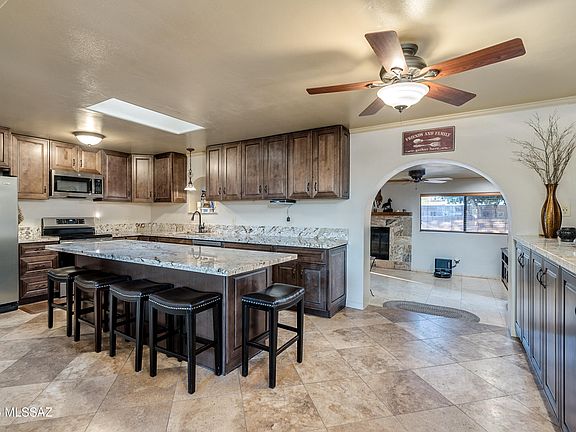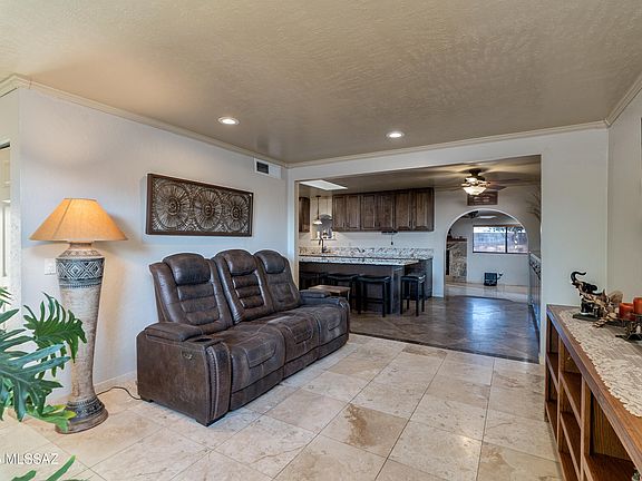 Once in a lifetime house on the East side of town with tons of upgrades including a newer roof and a spectacular backyard! Wait until you see the high-end kitchen remodel with granite counter tops, massive granite island and custom cabinets. This home also boasts 24 inch tile flooring in main living areas & 3 of the 4 bedrooms, with satillo tile in the primary. Both bathrooms have been beautifully updated. The family room has a wood burning fireplace for those chilly nights. Walk outside to the brick porch which leads to this backyard oasis. Large in-ground pool (resurfaced 7yrs ago) and a tiki bar with a custom built outdoor kitchen & grill. Rincon Mountain views abound on the other side of the yard with turf grass, a ramada, 2 orange trees, and 2 rain barrels. There are 2 sheds also located on the side of the house (one with power). Don't wait, there's so much more...come see this home today before it is gone!!! The family room is 300 Sq.ft and has been added to the total of 1571 Sq.ft.