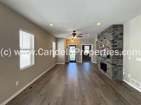 AVAILABLE FOR IMMEDIATE OCCUPANCY is this 2 BEDROOM, 2 BATHROOM home in the RENAISSANCE AT INDIGO RANCH subdivision of northeast Colorado Springs located at 7618 Red River Way 80923. Originally built in 2020 this one-level property features LOW-MAINTENANCE landscaping, CENTRAL AIR CONDITIONING, LVP flooring throughout the common area, an open concept common area with a spacious kitchen that includes quartz countertops, pantry, stainless steel Whirlpool appliances (side-by-side refrigerator with ice/water, built-in microwave, gas range and dishwasher) and walk out, adjacent dining area and living room with gas fireplace. The primary bedroom includes a 8 x 8.5 walk-in closet, private bathroom with dual vanities (at comfort-level height) private stool and large stand-along shower. Located in the Renaissance at Indigo Ranch subdivision of northeast Colorado Springs, this 1,457 square foot home is located within walking distance of the Sand Creek walking/biking trail and also boasts quick access to the North Powers Boulevard shopping corridor (Costco, Chick-fil-A, Saint Francis Hospital, King Soopers, Sierra Trading Post, First and Main Towne Center), the Colorado Springs Airport, Peterson Space Force Base and more. This home is located in Falcon School District 49. Other features of this property include a two-car attached garage with opener, GAS FIREPLACE in the living room, laundry room with electric washer/dryer hookups, home office with french doors, 10 x 12 back patio with views of Pikes Peak, trash collection and snow removal included (via the HOA), and all of the perks of a newer built home (Low-E Vinyl windows, plenty of outlets, etc.). PET POLICY: This property allows a maximum of two (2) pets - as long as they are not attack-trained or possess a history of biting people or destroying property. WE DO NOT COLLECT A DEPOSIT. Instead, we charge monthly pet rent of $25, again max of two pets. ALL APPLICANTS MUST REGISTER at https candela petscreening dot com Room Sizes of this 1,457 square foot property are: KITCHEN (main level) 12.5 x 14.5 - LVP flooring, quartz countertops, stainless steel appliances, pantry, walk-out to back patio, canned lighting DINING AREA (main level) 14.5 x 11.5 - LVP flooring, light fixture, open concept, adjacent to kitchen LIVING AREA (main level) 16 x 14 - LVP flooring, gas fire place, ceiling light/fan combo, coat closet, canned lighting HOME OFFICE (main level) 11 x 11 - carpet, overhead light, French doors, low-E vinyl window with 2-inch faux blinds LAUNDRY ROOM (main level) 5 x 7.5 - LVP flooring, electric washer/dryer hookups, shelving PRIMARY BEDROOM (main level) 14 x 12 - carpet, ceiling light/fan combo, private bathroom, 8 x 8.5 walk-in closet with shelving PRIMARY BATHROOM (main level) 11 x 5.5 - Tile flooring, dual vanities at comfort-level height, private stool, large stand-alone shower BEDROOM #2 (main level) 11.5 x 10 - carpet, ceiling light/fan combo, closet, low-e vinyl window with 2-inch faux wood blinds BATHROOM #2 (main level) 7.5 x 5 - tile flooring, comfort-height vanity, stool, shower/tub combo GARAGE (main level) 20.5 x 19 - concrete/epoxy floors, two stalls, opener with remotes The layout of this property is as follows: Entering from the large covered front porch is the open concept common area (living room with gas fireplace and ceiling light/fan, dining area and spacious kitchen with quartz countertops, pantry, stainless steel appliances and walk-out to the back patio). Off the entry is the home office, primary bedroom (with walk-in closet and private bathroom) and laundry room. The second hallway includes the second bathroom, second bedroom and access to the two-car attached garage. CANDELA PROPERTIES HAS A STRICT NO SMOKING / NO VAPING / NO MARIJUANA CULTIVATING POLICY MOVE-IN FUNDS: WE REQUIRE AN AMOUNT EQUAL TO TWICE THE FIRST MONTH'S RENT ($2,195 x 2 or $4,390) IN CERTIFIED FUNDS TO MOVE IN, REGARDLESS OF WHEN IN THE MONTH IT OCCURS. We then pro-rate the second month's rent to reflect when tenancy began in month #1. Our Qualifying Criteria: 1. Monthly Income must be at least twice the amount you pay in Monthly Rent 2. 675+ FICO credit score 3. Stable employment & income 4. Positive rental history (and/or mortgage payment history) You must meet at least 3 out of the 4 criteria listed above in order to be approved to rent this property. Applicants have the right to provide Candela Properties LLC with a Portable Tenant Screening Report (PTSR) that is not more than 30 days old, as defined in Colorado Revised Statutes section 38-12-902 (2.5). If Applicants provide Candela Properties LLC with a PTSR, Candela Properties is prohibited from: a. Charging Applicant a rental application fee or b. Charging Applicant a fee for Candela Properties to access or use the PTSR. AVAILABLE FOR $2,195 DISCOUNTED MONTHLY RENT Candela Properties is dedicated to honoring federal, state and local fair housing laws and will not discriminate against applicants/tenants because of their race, color, religion, national origin, familial status, disability, sex, sxual orientation, gender identity, immigration/citizenship status or military/veteran status. CRS 24-34-502(1) prohibits source of income discrimination and requires a non-exempt land lord to accept any lawful and verifiable source of money paid directly, indirectly, or on behalf of a person, including income derived from any lawful profession or occupation and income or rental payments derived from any government or private assistance, grant or loan program. Tenants cover utilities. HOA dues cover trash, snow removal and common-area landscaping Utilities (water, sewer, natural gas, electricity) are responsibility of tenants. Homeowner covers HOA dues (trash, snow removal, etc.)