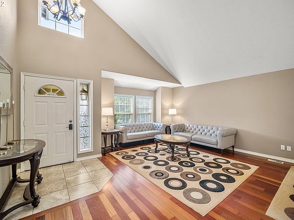 Mt. Scott Move-in ready home nestled on a quiet street! Enter into spacious living room w/ soaring ceilings. Beautiful traditional kitchen w/ SS appliances. Hardwood floors! Upstairs is 3 beds, 2 baths featuring new carpets & primary w/ vaulted ceilings! Newer Siding & exterior paint. Pre-plumbed for central vac & speakers. RV Parking. Covered deck & ample yard space perfect for BBQ nights & family entertainment. Walking distance to PlayHaven & Terrace Trails Park. Easy access to I-205!