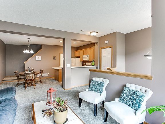 Nicely maintained 2BR 2BA two story townhome in prime Savage location. Maintenance free exterior. Tuckunder 2-car tandem garage is perfect for parking/storage/workshop. South-facing unit with lots of natural light. Main level Living Room, Dining Room, Kitchen, and Half Bath. New carpet main. Upper level has two large bedrooms and a Full Bath. Lower level finished Laundry/Mechanical. Common courtyard. Walking distance to retail and dining. Easy access to Hwy 13 and 169. Low HOA dues. Move-in ready.
