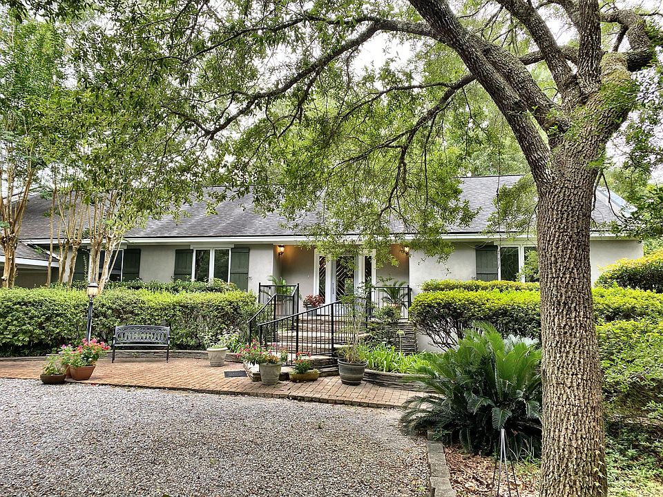 Beautiful golf course home tucked away from the street by a large wooded front yard, featuring a path with sitting area. Large foyer. Spacious great room with vaulted ceiling and large fireplace. Wet bar. Large windows across the back of home. Kitchen includes all appliances. Large dining area. All bedrooms are private. Main bedroom suite is large with plenty of windows, 2 walk in closets, large soaking tub, separate shower and double vanity areas. 2nd bedroom also has lots of windows, large closet and bath with spa tub. 3rd bedroom/office is large! Huge utility room. Large covered area across back of home. Deck with live oak tree. Patio with path to the golf course! Double car garage and double carport. There is also a home generator. This is a beautiful home with lots of privacy