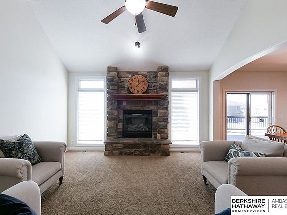 NEW ROOF W/ CLASS 4 SHINGLES JUST INSTALLED!! Move-In Rdy Walk-Out Ranch In Papillion/Shadow Lake! Curb Appl, Plenty of Off St Prkg, Stone-Faced Front, Cov Porch. Massive, Rare, 4 Car Garage! Lrg LR w/Gas Fireplace, 9' + Ceil. Kitch w/Wood Flrs, Gran Cters, Island, Wood Cabs, SS App, Din Area, Lrg WI Pantry. Pri BR Suite w/CF, Recess Ceil, Tiled Flr in BA, Wood Cabs, Gran Cters, Dual Van, Tiled Shwr, WI Closet. BR 2/3 of Good Size. Main Bath is Full w/Granite/Ceramic, Nuwhirl Tub w/ Tile Surround. Washer/Dryer Convey! Bsmt w/Huge Great Rm, Wet Bar, SS Apps, Bath & Lrg BR 4 w/WI Closet. Unfin Flex/Storage Rm (Approx 22' X 10'). Lrg, Level BY w/Cov Deck (Approx 20' X 14'), Garden, Firepit, Abundant Fruit Tree & Plants, Apple, Peach, Cherry, Berries. Sump Pit w/Pump & Backup Trickle Charger/Battery. Radon Mitigated (2019). AC & Furnace Serviced 2024. Papillion Schools. Min to Shadow Lake Shopping, Schools, Offutt AFB, Hwy 75, Hwy 50, I80!
