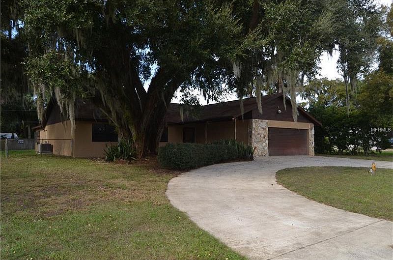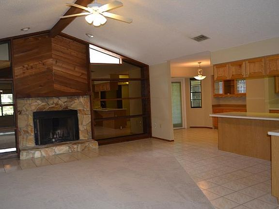 Country Living with all the conveniences close, this 3 Bedroom with DEN & BONUS Room is for you. As you enter this light and bright home, you will find cathedral and beam ceilings with rustic, stone wood burning fireplace. The open, Great Room split plan is perfect for entertaining or family gatherings. There is a 24x21 Bonus Room which is wired for surround sound. Perfect for in-house business, school or remove the counters for your own Home Theatre or Fitness Center. Also enjoy the huge Screened Lanai 35x17 along with oversized 2 car garage. Over 1/4 acre private, fenced yard with mature trees and palms and no neighbors in front--only woods. New Carpet, new paint! Newer A/C. Close to shopping, theaters, schools, river & Gulf of Mexico. PRESENT ALL OFFERS