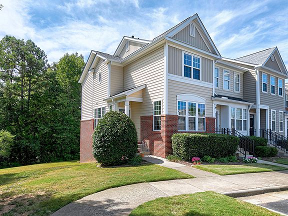 Pristine, Move-In Ready 3 Bed/3.5 Bath End Unit Townhome in Ideal Brier Creek location. Perfect Floorplan w/Open 1st Floor, 2nd Floor w/2 Spacious Bedrooms each w/Private Bathroom, & Basement that can be used as Bonus or Large 3rd Bedroom, also with its own Bathroom. Finished Storage Room in Basement w/Built-In Cabinetry/Shelves. Updates throughout including 2023 Roof, 2023 HVAC, High Ceilings, Stylish Laminate & Tile Flooring, Recessed Lighting, Two Fireplaces, Granite, Stainless Appliances (Refrigerator included), Island & More. End Unit w/Extra Windows offer added Natural Light. Excellent closet space in this home w/Primary having 2 Walk-In Closets. Community Pool/Clubhouse. Convenient location near 540, RDU, RTP, Shopping/Restaurants. MUST SEE!