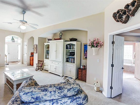 Beautifully maintained 3bd/2ba home features an open floor plan with recessed lighting in the kitchen and living areas, carpet and tile flooring, combo living/dining area, speakers for sound system in the living areas and patio/pool area, tray ceiling in the master, roomy walk-in closet, dual sinks and separate jetted tub and shower in master bath, kitchen upgraded for gas/propane cooking, well for the irrigation system, new AC installed 2014, and huge screened patio area with in-ground pool...