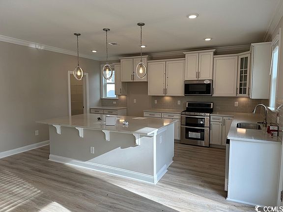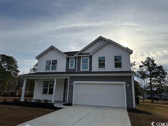 Premier Location, Water View, Tree-Lined Street, Front Porch, and More! This Edisto home offers the southern charm of a front porch, 4 Bedrooms, 3.5 Baths, a Study with French doors, and a spacious Kitchen open to the breakfast area and Great room. An open concept design with room to breathe! Located on a cul de sac and a quiet tree-lined street in the back of the community on a spacious lot with great space between your neighbors and a lovely lake view! The inviting front porch opens to a formal foyer. The Study with French doors offers a flex space for a dining room, workspace, entertainment, crafts, or a TV room. The Kitchen boasts Level 3 Silver Lining Aristocraft cabinets, a waste basket cabinet, soft close drawers/doors, Level 3 Quartz counter tops in Carrara Veil, Whirlpool stainless steel appliances (double oven natural gas range, over the range microwave vented to the exterior, and a dishwasher), and brushed nickel Progress Lighting fixtures. This well-appointed home also features brushed nickel Moen plumbing fixtures, faux wood window blinds, a lawn irrigation system, Sherwin Williams Agreeable Gray wall paint with white ceilings, a designer trim package, crown molding in the foyer, study, breakfast area, family room, and kitchen, a tray ceiling in the Primary bedroom, gutters, a natural gas tankless Rinnai water heater (located in the garage), and a fully sodden homesite with foundation trees and shrubs. 100% Energy Start Certified and Indoor AirPlus Qualified which means a more comfortable home with lower energy cost, less pests, less moisture, and less indoor air pollution. This home is equipped with an Energy Recovery Ventilator (ERV) system that pulls in fresh air and expels stale air so the homeowner experiences better air quality. Amenities include a community pool, clubhouse, exercise room, sidewalks, water views, and a premier location between Myrtle Beach and Murrells Inlet 2.5 miles to the beach and a golf cart ride or bicycle ride to several shopping and dining venues.