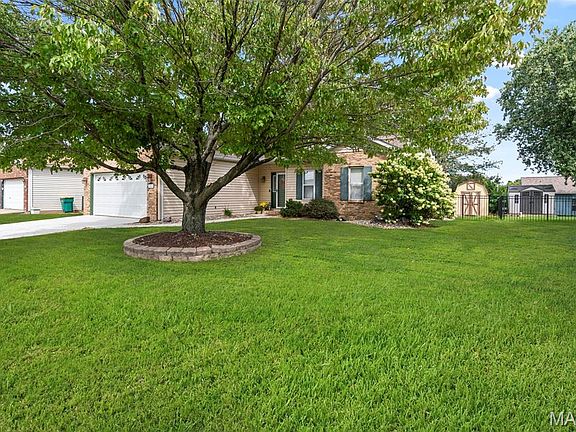 Come see this beautifully updated, 3 bedroom, 3 bath home that offers plenty of space with a fully-finished basement on a quite cul-de-sac in the O'Fallon school district! The owners have meticulously cared for this home, and it shows. The open floor plan showcases beautiful wood laminate flooring throughout. The open floor plan leads from the living room to the dining room to a spotless kitchen with stainless steel appliances, granite countertops, and a breakfast/counter area, perfect for meals or work space. The 16 x 11 primary bedroom features a walk in closet and a primary bath with dual sinks. Two more pretty bedrooms and a full bath complete the main floor. Continue downstairs and you'll find every homeowner's dream--a massive 46 x 16 family room/rec area, with plenty of space for rest and play. It includes a kitchenette with a refrigerator and microwave, a beautiful 3/4 bath, a laundry room and lots of unfinished space. The back yard is beautifully landscaped and fenced, with two sheds--one for storage, and one made into an entertainment area with A/C, and a bar and stools for extra fun! Whether you're needing space to grow, quiet time on the patio, or looking for perfect entertaining space, this home checks every box. New paint August 2025. New concrete driveaway August 2025.