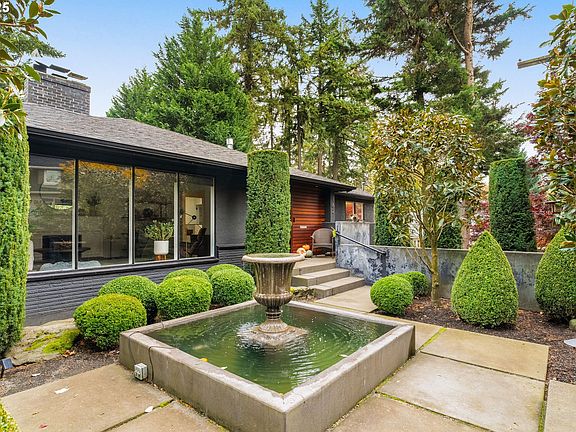 Rare mid-century daylight ranch in Lake Oswego’s highly desirable Evergreen neighborhood! Incredible location just blocks from downtown, local restaurants, cafés, and the LO Farmers Market, plus deeded lake access to Lakewood Bay.The main level features refinished hardwood floors, skylights, and large windows that fill the home with natural light. A gas fireplace anchors the living room, looking out on courtyard fountain views. The kitchen includes granite counters, stainless appliances, and a gas range, opening to a dining area that connects to the front deck for easy indoor-outdoor living. The primary suite features a French door leading to a private deck overlooking the gardens. A second ensuite bedroom and third bedroom (or perfect home office) complete the main level.The lower level provides a spacious family room with a second gas fireplace, a large fourth bedroom, and a full bathroom. Step onto a covered deck equipped with overhead infrared heating lamps and a ceiling fan for year-round comfort. This level also includes generous storage, a gym or workshop area, and a Finlandia cedar sauna.The backyard is your own private garden retreat! Terraced beds, mature landscaping, and a year-round natural spring and creek create a peaceful and private setting. A water feature and hot tub enhance the garden's tranquil design. A modern Belgian greenhouse—complete with lighting, power, and water extends the growing season with ideal east-west sun exposure. This is a special opportunity to live in one of Lake Oswego’s most walkable and sought-after neighborhoods.