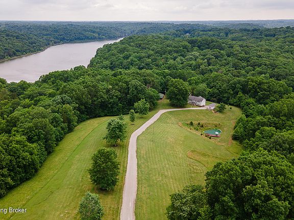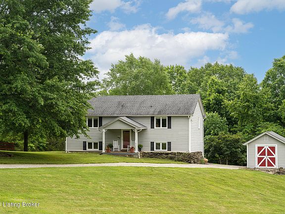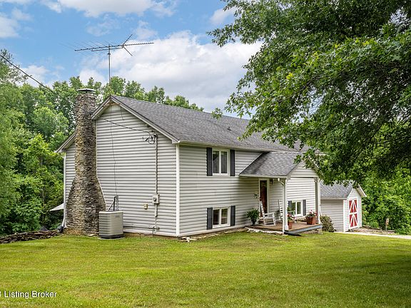 18 approximate acres are breathtaking with a view of Taylorsville Lake in the wintertime and includes approximately 8 acres that are beautifully manicured! There is a frog pond-fishing allowed, two treehouses for the adventurous, a large stone fire pit for roasting marshmallows, and a workshop with a charming back porch. For the young at heart, there is a swing set and a tractor or automobile garage for storage. The home was built in the late 1970's and completed around 1983. The original structure of the home was a horse barn that was located on the Henry Watterson Estate in Jeffersontown, KY. The current owners dismantled the barn utilizing the wood as the basis