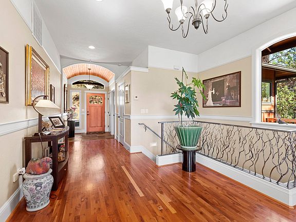 A custom Craftsman style home above the boulevard tucked in the trees with a wall of windows. This home has a level of workmanship seldom seen in town. Upon entering the home, you are struck by the grand entrance with the cedar arched hallway ceiling. The first level has beautiful hardwood floors, excellent light & views. In essence you have a home with 3 large primary bedrooms & 3 ensuite baths. The lovely downstairs bedroom suite has a gorgeous spa tub, 2 walk-in closets, shower with double heads, double vanity, and a private deck. The living room has barrel style wood ceiling in the corridor, 2 sided see-thru fireplace from the formal dining room to the living room. The gourmet kitchen has granite counters, picture window over the sink, large pantry & double wall ovens. There is a family room or office downstairs. Stunning property with mature trees and outdoor decks. Minutes to the Plaza but feel like you are on vacation in a forest with mature trees & beautiful views.