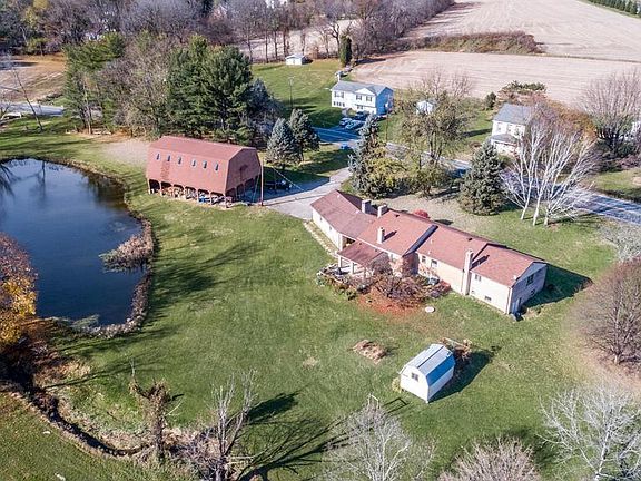 Wonderful spacious all brick ranch on over 10 acres. Country living while being only a 5 minute drive from everything. Oversized 2 car garage with 2 covered porches. Full unfinished basement for additional space. The large barn 28 x 50 has a gravel floor on the first floor with the 2nd floor being 38 x 56 with a volley ball court and basketball court for partying and fun. There is a storage shed, a pond and a small creek running through the property. Arrange for your personal showing today! Ariel photos were taken last Fall. Interior photos coming soon.