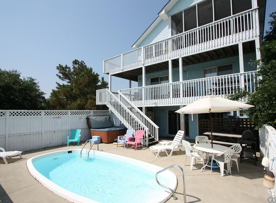 Attractive 5 Bedroom Design provides more spaciousness than most Beach Homes in Ocean Sands PUD. Fun for one and all, in the Rec Room with Pool Table, Screened Porch, Private Pool & Hot Tub, Volley Ball Court and Putting Green. Offers more privacy with only two adjacent houses. Corner Location makes Access to the Beach so much closer than Beach Homes in Sections K or L and closer than many in Sections M & N. Enjoy the use of Community Outdoor Tennis Courts too. Convenient to Retail Shops, Grocery Stores, Cinema, Putt Putt Golf, Restaurants and the wide Beautiful Beach of Corolla !