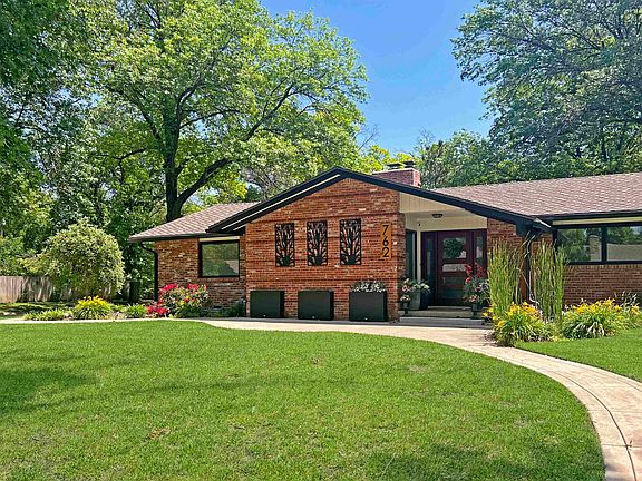 Welcome to this gorgeous mid-century home, beautifully updated to blend modern elegance with contemporary upgrades. Offering over 2,700 square feet on a generous third-acre lot, this residence boasts stunning curb appeal (fresh paint, new siding and Pella windows (summer 2024). Step inside to discover the beautiful original hardwood floors and high end laminate wood flooring, complemented by exquisite details such has 3" baseboards and trim. This home features not one, but two inviting living rooms; the family room showcases a cozy gas fireplace with floor to ceiling stone and large windows for an indoor-outdoor living experience. The family room also includes a kitchenette area with its very own ice maker, ideal for a coffee station or bar. Enter the well-appointed kitchen and dining space, where you will find ample space for cooking or baking for guests, granite countertops paired with glass tile backsplash, a gas range with griddle, abundant cabinet space, and a lovely hightop bar for extra seating. The spacious master bedroom with French doors to the backyard patio, offers a newly built walk-in closet featuring a built in desk and island with extra storage space. The master en suite includes a large jacuzzi jet tub and mosaic river pebble tiled walk-in shower featuring a rain head and an updated double vanity. Additionally, there are two more bedrooms and one additional updated bathroom. The main floor laundry room includes extra space for storage. Outdoors, enjoy your own private oasis with a newly installed 8-foot privacy fence (March 2025), commercial grade SYNTURF lawn which means no more muddy paw prints to clean, and your very own Tiki Bar-perfect for entertaining or relaxing while watching the game on the big screen! This property offers the space and style you're looking for, all in a location of east side amenities schools, parks, dining, entertainment and more. Schedule your private showing today and experience all it has to offer before it's gone! Seller is licensed Realtor in the state of Kansas.