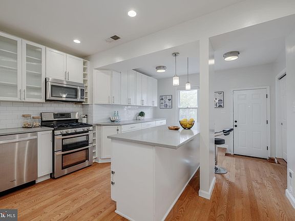 Stunning 3BR/1.5BA brick federal-style townhome with sophisticated updates and fantastic outdoor space in vibrant Park View. The home's impeccable refresh creates a grand welcome to the spacious open layout with beautiful hardwood flooring. Large windows and recessed lighting add to the home's modern ambiance. The sleek gourmet kitchen will wow the home chef with stainless steel appliances, quartz countertops, tile backsplash, extended island, and amazing storage. Great gatherings await with a generous snack bar, elevated dining area, half bath, and outdoor entertaining space. The home's graceful styling continues on the top level with a gorgeous primary suite with dual closets and a luxuriously tiled semi en-suite bath. The private stone patio is fenced and landscaped, creating your new favorite spot to relax and entertain. Ample storage and convenient parking complete this must-see home. The home's location offers convenient access to dining, shops, and nearby parks. With Georgia Avenue and nearby 14th Street, there is always something to see and do. Moments from Petworth Metro and Metrobus on the corner simplify downtown commuting and getting around.