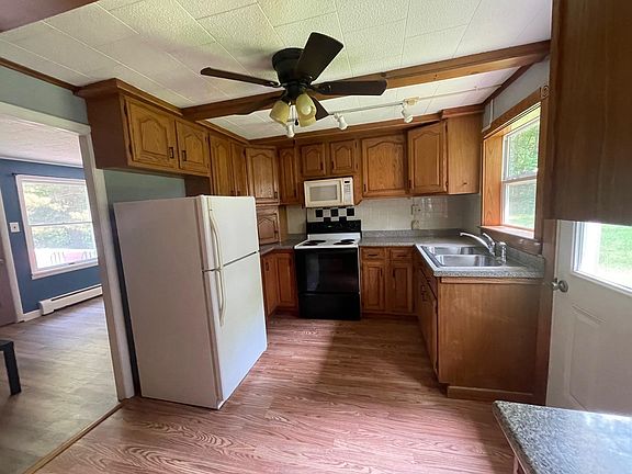 Discover comfort and convenience in this 3 bedroom, 1 bath ranch-style home. Situated on a 4.2 acre lot - both wooded and with plenty of lawn space for outdoor activities. Just minutes from the village and colleges, you have the best of both worlds - privacy and accessibility. The one level layout includes a combination laundry, mudroom and utility area. There are 3 bedrooms - one featuring built-in space-saving drawers. The kitchen has oak cupboards and all appliances are included. The dining room is off the sitting area of the kitchen. The living room is situated on the front of the home and features large windows allowing for an abundance of natural light. The garage area has access to the backyard, space for a workbench and a generator hookup. A great home for many types of buyers!