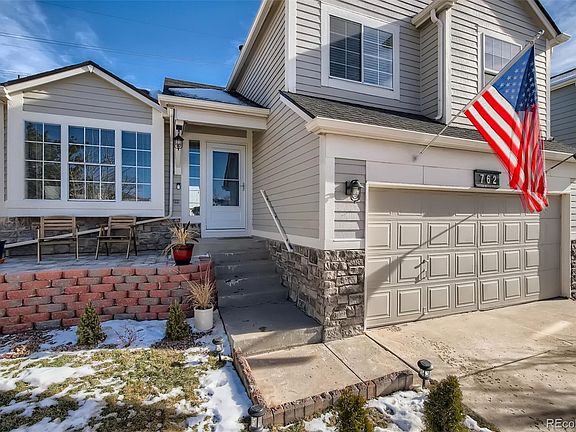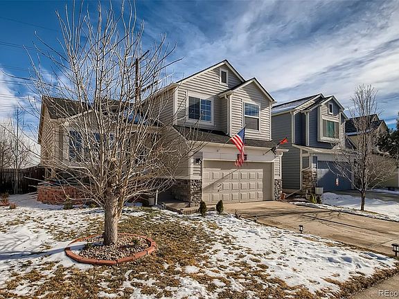 Great Multi-level home in Founders Village. Pottery Barn adorable! Open floor plan with vaulted ceilings and tons of windows! Large family room, with wood beam in the ceiling! Kitchen is extra roomy with Stainless steel Refrigerator and an eat-in space with access to the deck in the back yard! Great room has cozy gas fireplace with mantle and lower access to the back yard! 3 bedrooms up include a master bedroom and bath with soaking tub, double sinks and walk in closet! Additional 2 bedrooms up share the 3/4 hallway bathroom with double sinks! Basement is unfinished and ready for refinishing for extra living space! The home backs to the greenbelt with bike path and trails! Colorado living at its best! Close to retail and shopping. ALL PHOTOS WILL BE IN MLS BY SAT AM. SHOWINGS START SATURDAY JAN 8th at 10 am.