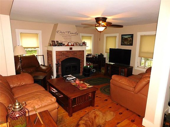 This great turn of the last century home (built in 1895) sits on 2.46 acres of useable land. The house is located at the front of the property leaving a 320 foot back yard. The property also includes a detached garage/shed, a barn with a workshop, and apple trees. This home has all original beautiful heart pine floors on both levels. Since 2006 there have been many updates and improvements including new roofs (2016) on the house, garage/shed and barn, new baths (2008), new kitchen with granite counters and a center island (2008), new windows and siding (2007), new hot water storage tank (2006), new 4 bed septic system (2016), new bulkhead (2016) and new chimney flue (2007). The first floor room layout can be flexible to suit your needs. There is a fireplace in the living room. This is a must see home. 1 year home warranty included.