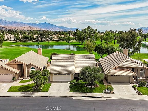 PANORAMIC Golf Course, Mountain, Lake(s) & Night Light VIEWS FROM THIS EXPANDED & COMPLETELY REMODELED ONE-OF-A-KIND HOME (1,618 Sq Ft) The Current Owners have put in approx $145,000 in Gorgeous Upgrades, which is IN ADDITION to the Home Expansion and A/C Replacement done prior. This Exquisite Home offers TWO Re-Configured & Remodeled PRIMARY 'EN SUITE' BEDROOMS & Baths, located at opposite sides of the home, each bringing it own custom designs (Expanded Closets & Baths with Quartz & Marble Stone, Enlarged Shower and a SAUNA); Other Features include: Top Quality Porcelain 24x24 Crema Marfil Flooring imported from Spain; New 8' & 9' Sliders & Many New Windows providing Stunning Views & Amazing Natural Light Flow - Triple Glazed Bay Windows in the Front BR Suite; Built-In TV Cabinet with Dimplex 33" Milti-Fir XD Fireplace (open with a wave of the hand). The Remodeled Kitchen has been thoughtfully custom designed with all new Cabinetry (30" pull out shelving), Classy Pulls & Knobs & a Refrigerator surrounded by custom cabinetry (like sub-zero), New 2025 Dishwasher; Custom Lighting & Ceiling Fans throughout the Home. There is a Built-In Office/Work Station Adjacent to Kitchen. The Patio is like an Outside Living Room, with a Patio Cover running the entire length of the Home, Ceiling Fans, A Fountain & Newer Polycarbonate Skylights - And this Stunning home is a very short walk to main Clubhouse (Restaurants, Bar & Lounge Fitness Center, Pool & Spa and SO many activities........ Sun Lakes Country Club goes beyond just a place to live - It's a vibrant community designed to keep you Active & Engaged, offering: TWO 18-HOLE GOLF COURSES with 2 Pro Shops, THREE Clubhouses, TWO Restaurants, Bar & Lounge, Tennis, PICKLE BALL COURTS, Pools (Including Large Indoor Pool), Jacuzzi Spas, THREE Fitness Centers & Fabulous Planned Activities Offered on a Daily Basis. There are 80+ Social CLUBS, and If that's not Enough, Add TRIPS AND TRAVEL EXCURSIONS scheduled all year long. Association Dues INCLUDE CABLE TV & INTERNET - The community is Located Close to Casinos, World Famous Shopping (Cabazon and Palm Springs), Restaurants, and Excellent Medical Facilities