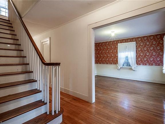 Charming 1942 Cape Cod home on West Main Street, near Historic Downtown Elkin. This home features a traditional layout with formal dining room and living room with wood burning fireplace. Hardwood floors throughout. Just off the living room is a cozy den with wormy chestnut paneling. The sunny kitchen is ready for your appliances and features sunporch with laundry room. The primary bedroom is located on the main level and features a private bath. The second level features two spacious bedrooms and one full bathroom. Ample closet space. Unfinished basement provides nice storage space and workshop area. Outside enjoy side deck and parking pad. This home is located in the heart of Elkin - near Elkin City Schools, trails, parks, entertainment, dining, recreation and shopping.