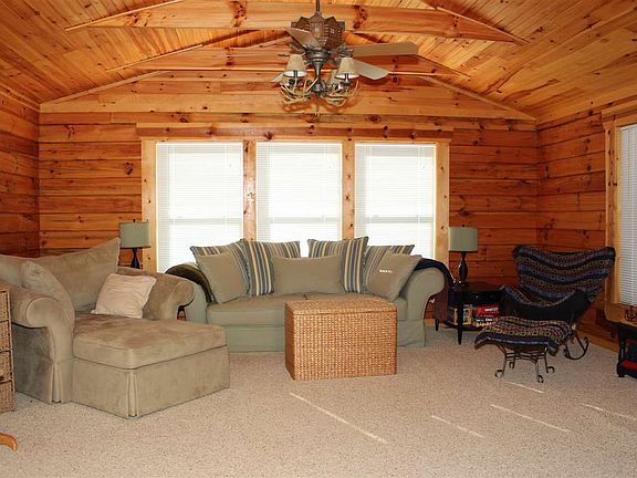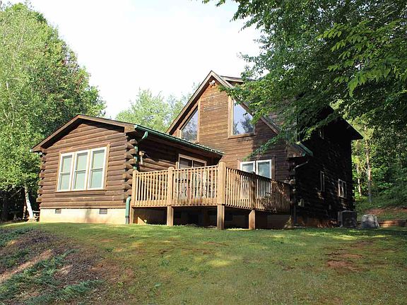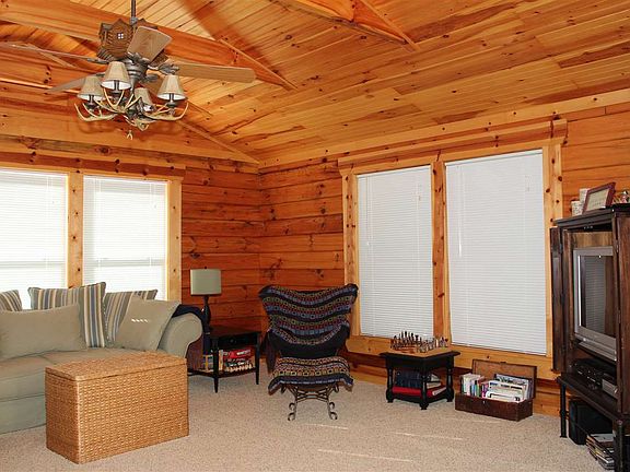 This log home is only 5 minutes from town. It is nestled quietly in the woods on a 3.08 acre lot. It has a double garage with a 288 square foot bonus room that is finished and is cooled by a window unit. It is finished just like the rest of the house. The owner believes the floors are bamboo. The house has a large family room that is 16 x 18. The master is on the first floor and there is a sleeping loft with space for two additional beds. The setting is very quiet and is beautiful. With eh lot being at the cul-de-sac, there is almost no traffic.