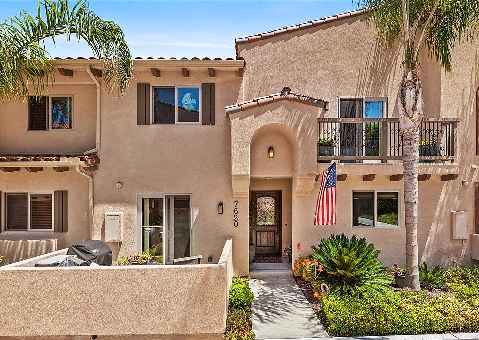 Gorgeous luxury La Costa townhome w/golf course views. Features include: elegant wood floors, gourmet kitchen w/high-end SS appliances, dining room w/large balcony, master suite w/2 walk-in closets & fireplace, entry level bed & bath, huge bonus room (perfect to use as a game room) w/custom-built storage closets, custom stone-work in all baths, amazing location nestled on the prestigious La Costa Resort golf course, close to top schools, walk to shopping centers & just a 10 min drive to beautiful beaches.