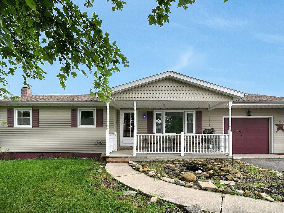 WHAT A GREAT LOCATION WITH A CORNER LOT ..THIS HOME SITS ON 3.64 ACRES IN AMANDA SCHOOL DISTRICT. Ranch style home with 3 bedrooms and 2 bath, new kitchen and flooring, newer upstairs bathroom. Full basement with new flooring in the great room. Above ground pool in the back yard for some fun in the sun. Property includes a 30 X 40 pole barn garage equipped with a car lift . Two sheds for extra storage . All kitchen appliances stay.