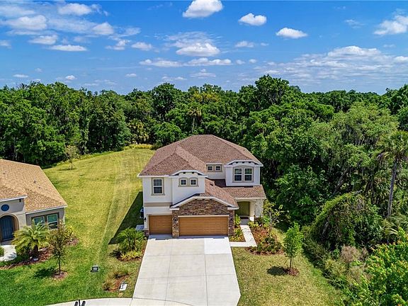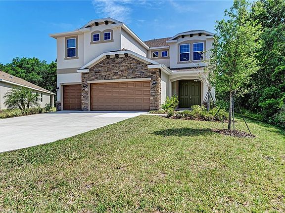 A one of a kind - 200' deep homesite at the end of a cul de sac makes for a perfect setting for this 4 bedroom, 3 bath home with 2 bonus rooms and 3 car garage! The kitchen boasts a unique T shaped island with granite counters, ss appliances, wood cabinets, huge counter spaces and a walk in pantry. The 2nd floor boasts a magnificent master suite with an en-suite bath including dual sinks, separate tub / shower and a large walk-in closet. The upstairs also has 2 additional bedrooms, another bathroom, a loft and a bonus room - perfect for additional family living!! The 1st floor bedroom and bath is ideally suited for your guests. Other upgrades include laminate flooring, crown moldings, low-e windows, LED can lighting, great ceiling fans and much more. The expanded, screened and covered lanai brings outdoor living inside and offers the ideal place for enjoying a view of the spacious, super private back yard. Conveniently located in a gated community with easy access to St. Petersburg, Lakewood Ranch, Sarasota, Bradenton, the Ellenton Outlet Mall, UTC Mall and our world famous Gulf beaches.