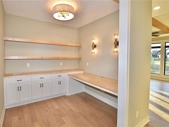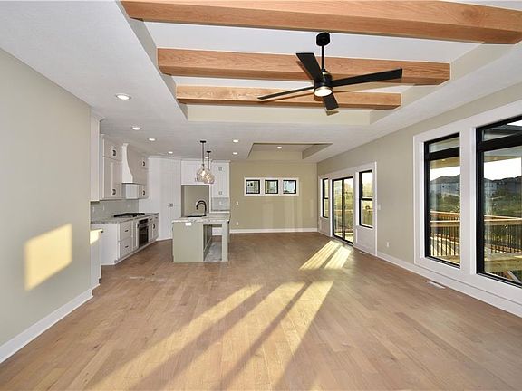 Move-in ready and filled with thoughtful design details, The Ashton by Hearthside Homes offers the perfect setting for modern living. This refined Reverse 1.5-Story combines timeless craftsmanship with today’s most desired finishes in one of the Northland’s premier communities. Step through the double front doors into a welcoming foyer that provides privacy and a glimpse of what’s ahead. The great room showcases beamed ceilings, a designer fireplace, and large windows that fill the space with natural light. The kitchen features quartz countertops, gas cooktop with wood hood, under cabinet lighting, walk-in pantry, and a large island ideal for dining or entertaining. The primary suite includes a spa-style bath with shower and tub room, dual vanities, and a walk-in closet connected to the laundry. A main-level office with built-ins and second bedroom provide flexibility for guests or work-from-home needs. The finished walkout lower level offers two bedrooms, full bath, family room with wet bar, and ample storage. Upgrades include EV charger, Ring doorbell, keyless entry, and irrigation system. Hearthside Homes provides a 12-month builder warranty, third-party inspections, verified sewer scope, and professional duct cleaning. Davidson Farms offers clubhouse, pool, pickleball, pond, and trails—just 15–20 minutes to KCI and Downtown KC, in Liberty Schools!