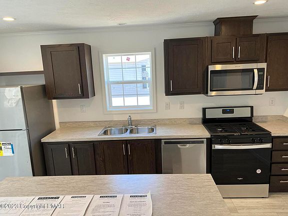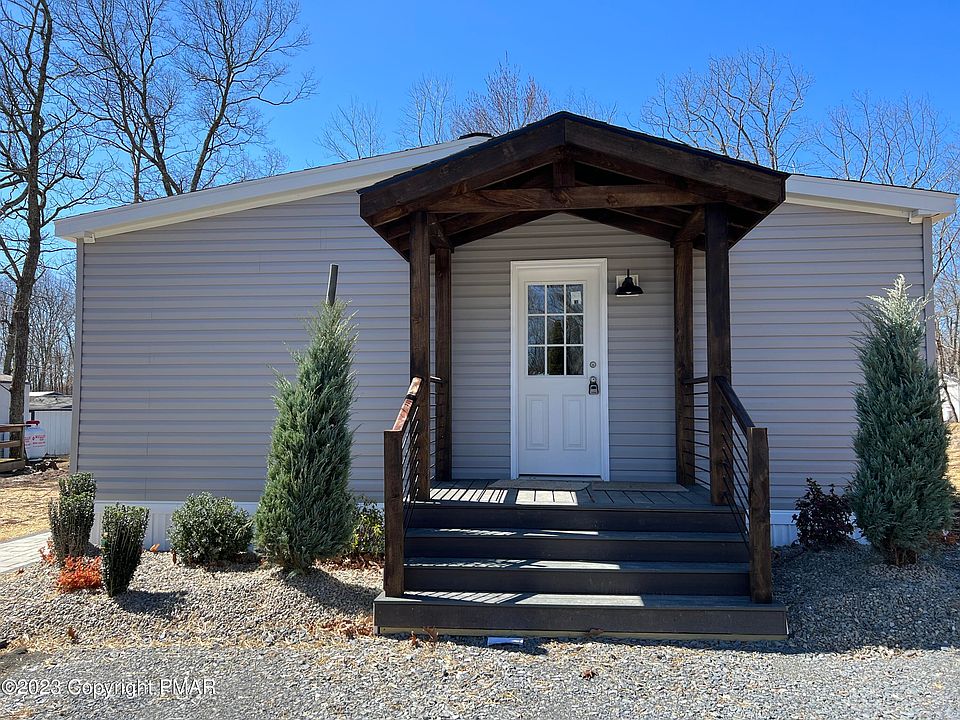 If you are looking for a Move in Ready home in the beautiful Poconos, this New 3 bedroom, 2 bath home in Rocky Ridge is the perfect fit. With many upgrades already completed, you can enjoy all the modern features and amenities of a new home with a 7 Year warranty without having to do any of the work yourself. Plus you get to take in the natural beauty of the Poconos while you relax and enjoy on your new Trex and Vinyl Surround deck. Dont wait and miss this great opportunity. Upgraded 200 amp electrical system, 40 Gallon Hot Water heater, Air Conditioning, Stainless Steel appliances, Much More. Lot Rent $580 includes water, sewer, trash, recycling.