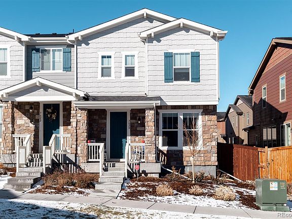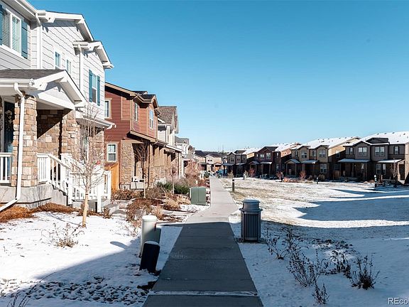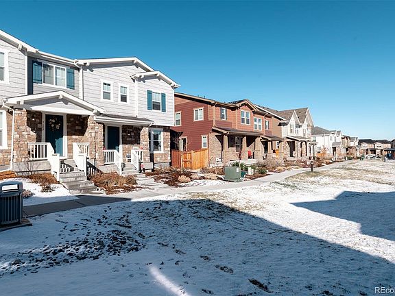 This less than 2 year old well-designed home opening onto the greenbelt. Offers an incredible floor plan offers three separate and generous living areas, ensuring you have all the space you need. Beautifully selected upgrades provide both practicality and style with wood-style flooring on the main level and upgraded carpeting in the bedrooms. The kitchen offers cabinets in Espresso, granite countertops and stainless steel appliances. The kitchen overlooks a great room with a traditional gas fireplace. Upstairs you'll find two secondary bedrooms separated by a large loft. The master suite features a large walk-in closet and en suite bath with upgraded cabinets, an extended vanity with double sinks and beautiful countertops, and a walk-in shower with upgraded tile surround. In the basement, you'll find a rec room, bedroom and full bath. Additional features include air conditioning, Sea Gull® ENERGY STAR® certified lighting, and side patio with heated pavers, end unit to maximize natural light, low maintenance yard, easy access to shopping, Southlands, Costco, Sams Club, Target and DTC. DIA is only 25 minutes away. Easy alley access to your two car garage.
