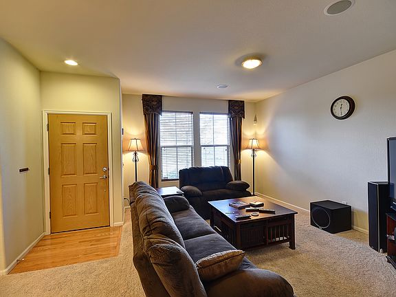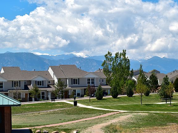 FORMER MODEL HOME! 2 Car attached garage. Kitchen boasts a pantry, breakfast bar and ALL appliances! Since it is a former model, it has upgrades not typical for the neighborhood including, rounded corners, A/C, vaulted ceiling in the Master Bedroom, security system, speakers,covered front porch. Close proximity to Ft. Carson, parks, I-25, schools, shopping, restaurants, etc... Also, enjoy the open views of the park area across the street, which has playground, soccer fields, lake, bmx track, walking trails, etc...