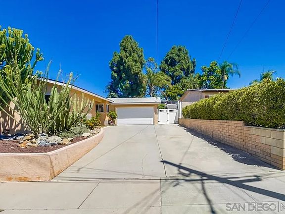 Charming North La Mesa Turn-Key 3-Bedroom, 2 Bathroom Home with RV parking in a Sought-After Lake Murray Neighborhood. This beautifully maintained residence offers a perfect blend of comfort, style, and convenience. Lake Murray is just a few minutes’ walk from the house. Enjoy exercising, boating, fishing and everything else the lake has to offer. As you approach the home, you’ll be greeted by a charming front yard featuring a half stucco wall with natural rock accents and mature cacti that add to the property’s curb appeal. Once you step inside, you’ll find a spacious living room adorned with a stunning brick wood-burning fireplace, complete with a classic wood mantel and raised hearth. A large sliding glass door opens to the backyard, allowing for seamless indoor-outdoor living and flooding the space with natural light. The kitchen features tiled flooring, ample cabinetry, and a convenient breakfast bar that opens to the dining area. A door from the kitchen provides easy access to the backyard. The home offers three comfortable bedrooms, all with original hardwood flooring. The home is equipped with dual-pane windows, ceiling fans, forced air heating, and air conditioning for year-round comfort. The master bedroom boasts a large closet with mirrored sliding doors and a private bath with tiled flooring and a glass-enclosed tiled shower. The third bedroom, located just off the living room, features its own sliding glass door leading to the backyard, offering flexibility as a guest room, office, or den. See Supplement