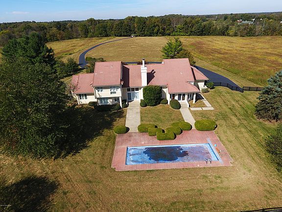 A RARE OLDHAM COUNTY FIND!! GOSHEN home situated on 18 lush acres in the Oldham County horse country. Almost 4895 SF of open living space and a first floor master bedroom combine to create an elegant and contemporary feel within a pastoral setting. Views of the pool, landscaped patio and fenced paddocks are available throughout the house. Several large horse farms and equestrian training facilities in the immediate area allow for easy access to related events and create an ambiance unique to the Bluegrass. The property boasts significant frontage along US 42 allowing for future equestrian or residential development while protecting the privacy of the main house. Award winning Oldham County schools (Harmony Elem., NOMS & NOHS).