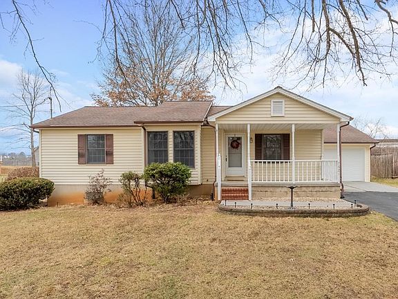 Warm, welcoming & full of charm, this ranch truly feels like home sweet home! Enjoy easy one-level living where sunlight streams through the numerous windows, the hardwood floors gleam and an effortless flow make everyday life comfortable and convenient. The spacious living room features a built-in entertainment center, flowing into the dining room with a modern chandelier and access to the covered rear deck—perfect for BBQs and al fresco dining. Galley kitchen offers ample cabinet and counter space with a full complement of appliances. A hallway leads to the garage and stairway to the full basement with storage and expansion potential. The primary suite includes a private bath and generous closet, while two additional bedrooms and a shared bath are on the opposite side for privacy. Complete with a single-car garage, detached shed, and quick access to Volvo, schools, Christiansburg, Radford University, and Virginia Tech, it offers the perfect balance of comfort, convenience & lifestyle