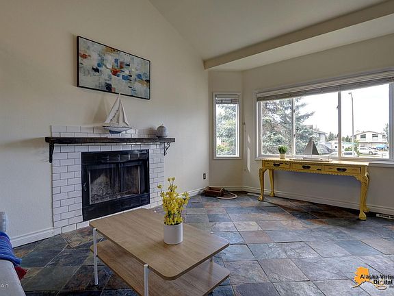 Lots of updates in this South Anchorage home! New laminate throughout, new cabinetry, interior paint, lower level windows and new door to access yard. Vaulted ceilings, fireplace and slate tile in the living room. Open kitchen with new cabinets, ss sink & faucets with dining area and access to yard & hot tub. Large fenced yard has shed for extra storage. Close to shopping, schools & restaurants.