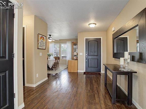 This wonderfully maintained property offers a perfect blend of modern upgrades and peaceful retreat. With recent enhancements like new exterior paint in 2023 and a new hot water heater in 2021, this home is move-in ready and ensures comfort and peace of mind. Inside, discover a spacious and inviting interior. The kitchen boasts a bright open concept with a pantry and new dishwasher installed in 2021, making daily chores a breeze. There’s plenty of space to entertain with a formal dining room and living room on the main level. A spacious primary suite offers a large walk-in closet and 5-piece bath. The upper level also offers a multi-purpose loft, two bedrooms, a full bath, and a laundry room with built-in shelving. Beautiful landscaping extends from the front yard to the fully fenced backyard with a patio & firepit area to create a comfortable, vibrant atmosphere. The 3-car garage includes a workbench and shelving space. The roof, replaced in 2018, provides added durability and value. Appreciate the convenience of having all school levels within a 10-minute drive. Imagine the ease of morning routines with such proximity to educational institutions. Additionally, outdoor enthusiasts will love the close proximity to Fountain Creek Regional Park, just a 10-minute drive away. Enjoy hiking, picnicking, and a range of recreational activities in this beautiful natural setting. Quiet neighborhood for relaxation, just 15 minutes from the amenities and entertainment of Colorado Springs.