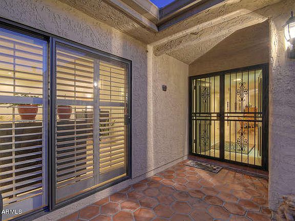Unique opportunity to own one of the largest units in Sunrise Villas. This floorplan is very popular with large living areas, open dining room and great functionality. Recent improvements and renovations have been completed. Master bedroom is spacious and features a large shower with tile surround and glass block. French doors and skylights provide dramatic entry into guest bedroom. Third bedroom has very nice views of the open space. Outdoor living includes over-sized courtyard and quiet back patio. Large garage with built-in storage. Beautiful neighborhood with mature landscaping and expansive grass areas. Sunrise Villas has 4 dramatic pools and multiple tennis courts. Perfectly situated with great access to the popular shopping, dining and entertainment venues in Scottsdale.