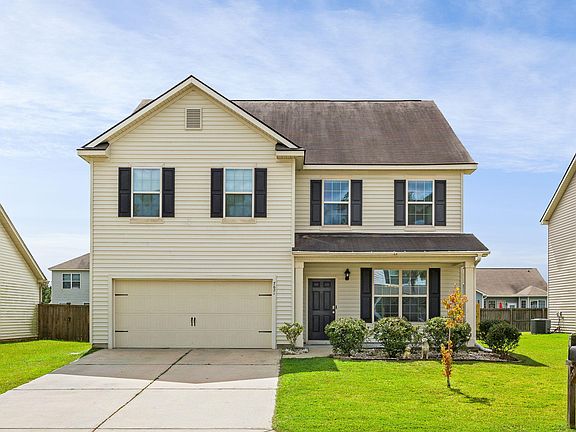 Charming & bright open floor plan just minutes from Boeing, Air Force Base, Charleston Airport & more! This spacious 5 bed, 2.5 bath offers open concept living with separate dining room. The kitchen, off the dining room, has an abundance of cabinetry & counterspace, separate pantry, & adjacent breakfast area with bar height seating. The large family room overlooks the private fenced backyard. Upstairs you will find four bedrooms plus a 16.5'x14' bonus room with closet (possible 5th bedroom). The master suite has tray ceiling, his & hers separate walk-in closets, & ensuite bath with double sinks, garden tub, & separate shower. There are three additional bedrooms, full bath, laundry, & linen closet. Features: HVAC recently replaced (last 2 years), 2 car garage, & security system.
