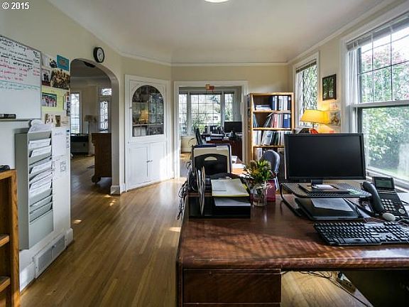 Charming 1908 Craftsman Bungalow on a 10,000 SF lot with many possibilities. Beautiful original leaded glass windows, hard wood floors, Single oversized 17 X 21 car garage. SW facing yard on a private sunny corner lot. Currently used as a business with a conditional use. Zoning is R-5a. Taxes are exempt for current owner but will be re-assessed.
