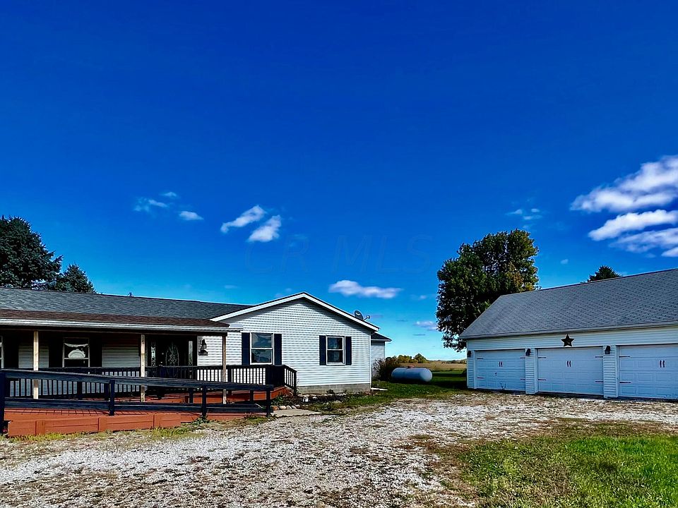 Dreaming of sitting on your front covered porch with beautiful panoramic country views? Located on a quiet road in Fredericktown School District is this 2148 sq. ft. 4 bedroom, 3 full bath ranch home situated on an acre with 3 car detached garage w/ loft area. House could be converted back to a single family floor plan or utilize the current layout which is divided into two separate living quarters that offers private kitchen, full bath, living room with separate private exterior access. Beautiful hardwood floors throughout. Lots of storage in the full basement or loft area of the 3 car garage. Easy access to I-71.
