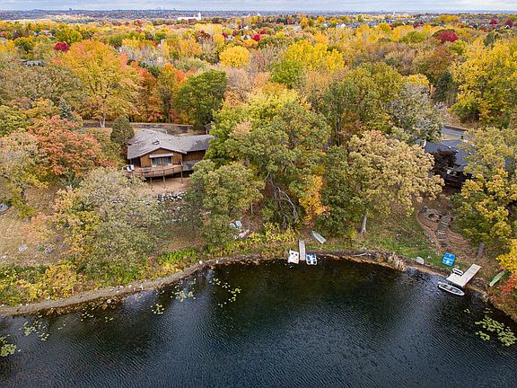 This is a fabulous opportunity for a lakeshore renovation! With 172’ of LAKESHORE on Savage’s DAN PATCH LAKE, this home offers panoramic lake views and an incredibly private setting, tucked at the very end of a quiet cul de sac on a street few have ventured down! 4 GARAGE STALLS including a two-stall 23x29 attached garage, 25x23 workshop, and an additional two-stall 23x25 detached garage. Perfect for the auto enthusiast, carpenter or tradesperson. In addition to the remarkable garage space, the home showcases beamed and vaulted ceilings, 2 fireplaces, a sprawling deck with covered and uncovered relaxation areas, large concrete patio, firepit, exposed brick walls, 2 main floor bedrooms, and a lower level bedroom plus office. Check out the aerial map to see where this home sits on the street and lake! With some TLC this home will offer an incredible once-in-a-lifetime opportunity for a lakeshore setting on this recreational lake.