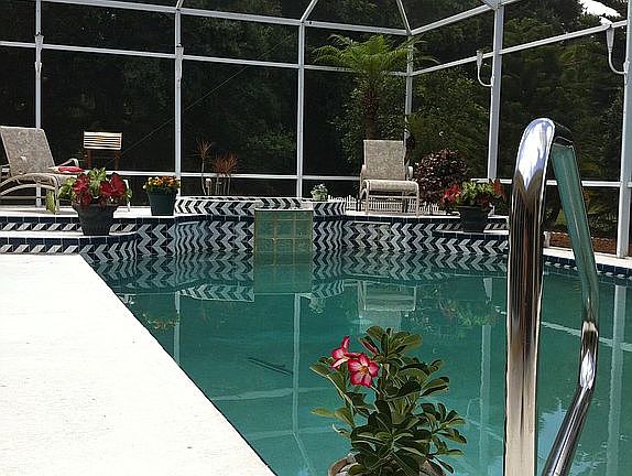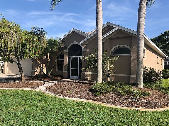Enjoy this private custom built 2,714 SF 4 bedroom 3 bath family home with split floor plan located in Creekwood Development. Located in highly rated school district. The development has no CDD fees and Low HOA, currently $140/quarter, which includes community pool, lighted tennis courts, basketball court, pickle ball, and picnic areas. Extra large kitchen with island and nook opens into great room, with butler's pantry leading into the formal dining room, built in buffet and switched electrical outlets on all plant shelves for decorating. The master suite opens off the living room with 2 large walk in closets, extra storage, oversized ensuite, with double vanity, soaking tub, roman shower, linen closet and separate water closet. Private entrance to second master suite. Crown molding throughout, expanded double car-attached garage. Surround sound wired with speakers throughout the home, including garage and lanai. Brand-new outside barbecue with weatherproof cabinets and new propane grill with 60 gallon propane tank included. Cable TV on lanai, Oversized cage pool with hot tub. Pool has double heating system, with solar and electric heat pump for back up, to keep the pool temperature to your liking