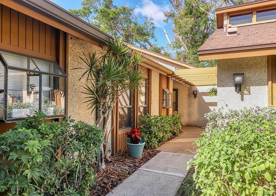 ** Move In Ready** Welcome to your new home in Pine Bay Forest, a serene community spread over 22 acres of lush tropical landscaping. This rarely available, private, end-unit villa is perfectly situated on a quiet corner lot, offering both tranquility and privacy. Completely updated and renovated, this home is filled with tasteful upgrades. The kitchen was completely renovated in 2023 and features elegant high gloss cabinetry, quartz counters, stainless steel appliances and a quartzite pass thru. Enjoy relaxing in the living / dining area featuring vaulted ceilings, a wood burning fireplace, hickory wood flooring, and abundant natural light. A wall of Pella sliding doors leads out to the covered, screened-in lanai perfect for enjoying your morning coffee. The spacious primary suite features a vaulted ceiling with side by side walk-in closets, and Pella sliding glass doors leading out to the lanai. Escape in the spa like feel of the large primary bath with a stunning walk- in, glass walled shower with garden views, granite counter tops, double sinks, and wood cabinetry. This community, located within 5 miles of the beaches, offers a sparkling pool, spa, sauna, tennis court, pickleball and shuffleboard. The Overlook, a private community deck on Palma Sola Bay, offers residents breathtaking sunset views, is the perfect spot for unwinding and mingling. Enjoy a vibrant lifestyle with regular community social events. This gem combines comfort and nature, ready for you to move in and make it your own. Schedule your appointment for a private showing before it is gone!