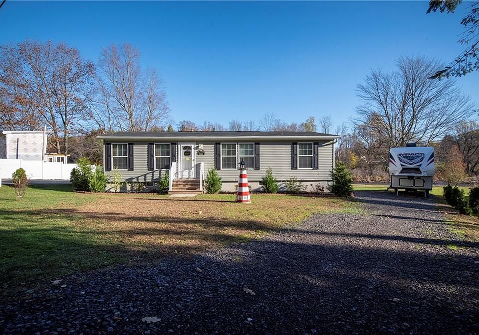 Everything was brand new here as of 2017. 3 bedroom, 2 full bathroom double wide on over half an acre with over 135' of water frontage on Stanford Creek, which will bring you right out to Port Bay. The owners went above and beyond with every facet of this beautiful home. There are 2 driveways, one blacktop and one gravel, as well as a huge, 2 bay, insulated garage with an epoxy floor providing tons of parking. The enclosed porch and deck overlook the large yard, perfect for unwinding or entertaining, this home is turnkey, ready to move in and enjoy!!