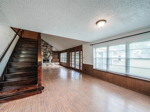 Beautiful stone fireplaceGuest homeNice wood laminate flooring
